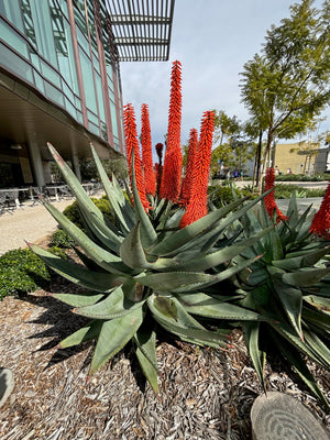 Some aloes are compact and solitary, while others form beautiful clusters. Certain varieties grow tall and tree-like, adding bold vertical interest. Leaf colors can range from rich greens to stress-induced reds, and even cool blue tones—like the popular “blue elf”. From late fall through early spring (November to March), aloes reward you with vibrant flower spikes in shades of orange, red, and yellow.