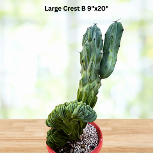 Elevate your garden or indoor space with the Crested Blue Flame Cactus, a rare and stunning mutation of the classic Myrtillocactus geometrizans. Known for its captivating, wave-like crests and intricate, organic folds, this cactus is a true showstopper. Ideal for container gardens, tabletops, or sheltered outdoor spaces, the Crested Blue Flame adds a sculptural, one-of-a-kind element to your collection. Limited number of large one of a kind crests available! What you see is what you get.