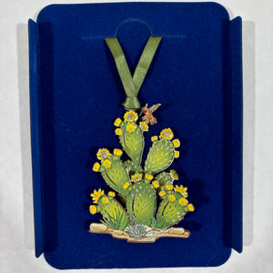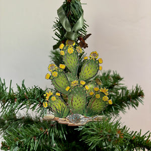 Add a little Southwest flavor to the Christmas tree this year. This stylish flowering prickly pear brass ornament comes with a ribbon for hanging on a tree or anywhere in your home. Each ornament measure approximately 3"x3". Made in the USA!