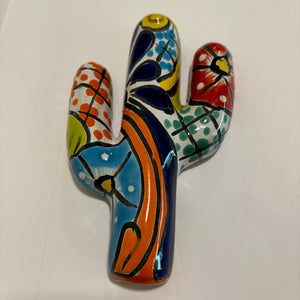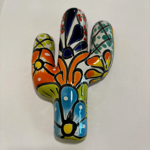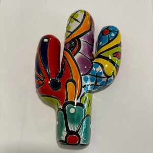 Our mini Talavera saguaros, crafted and hand-painted in Mexico, bring the iconic beauty of the saguaro cactus—arms included—into a perfectly compact, vibrant piece and we have two options. Our individually labeled saguaros with holes for hanging and Talavera saguaros that will stand on a book case, office desk, table or patio.