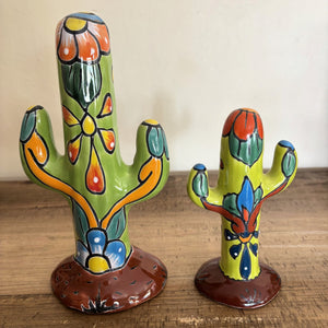 The standing Talavera saguaros measure 9" tall and 5" wide in the large size and 6" tall and 3" wide in the small size.