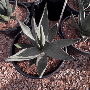 Agave Shark Skin forms a dense, symmetrical rosette of thick, broad leaves with a rugged, matte finish that resembles shark skin. Its rich blue-gray coloration creates bold contrast against gravel, stone, concrete, and desert plantings.